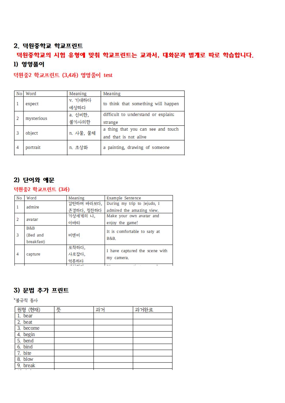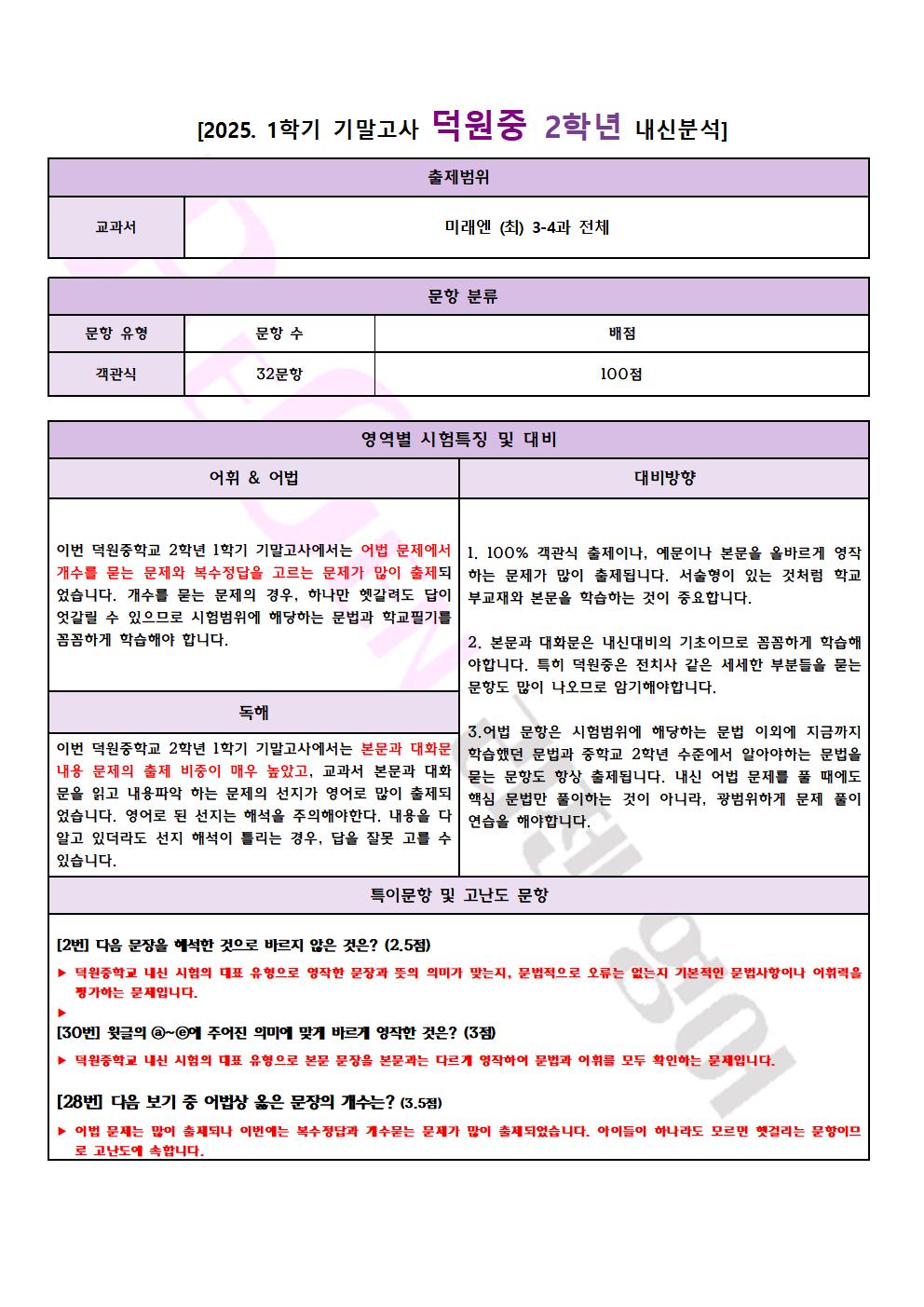 [덕원중2] 25' 1학기 기말고사 영어 내신분석 및 대비전략