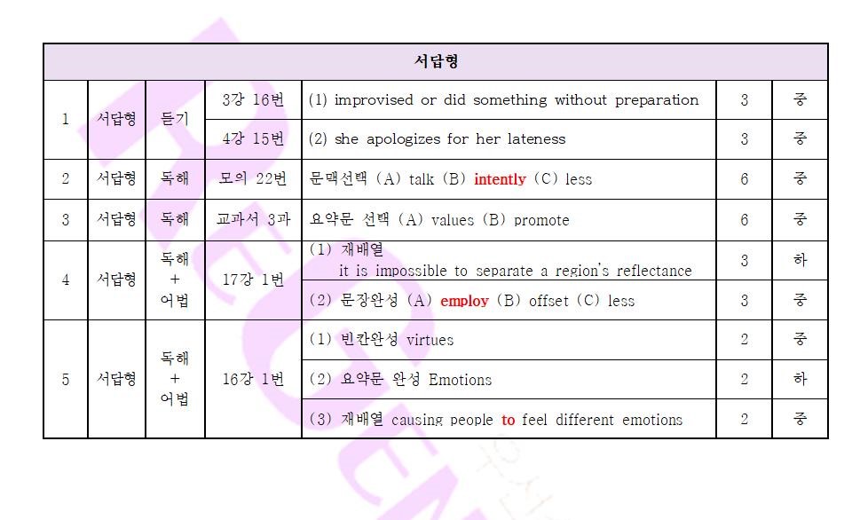 시험분석 & 적중문항